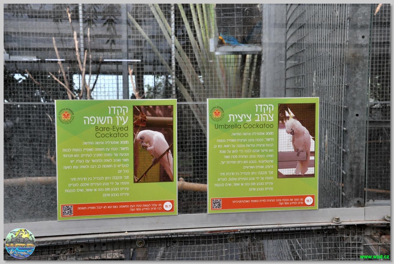 emu, několik druhů papoušků (ary, kakadu, eklektusi, žaka, alexandři,