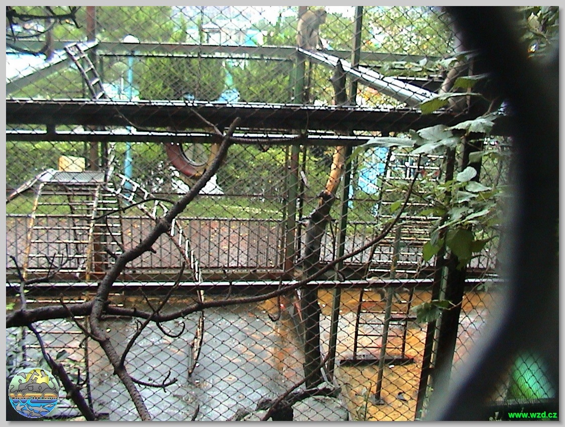 Zvířata byla v malých klecích či voliérách (jeleni, makaci, králíci,