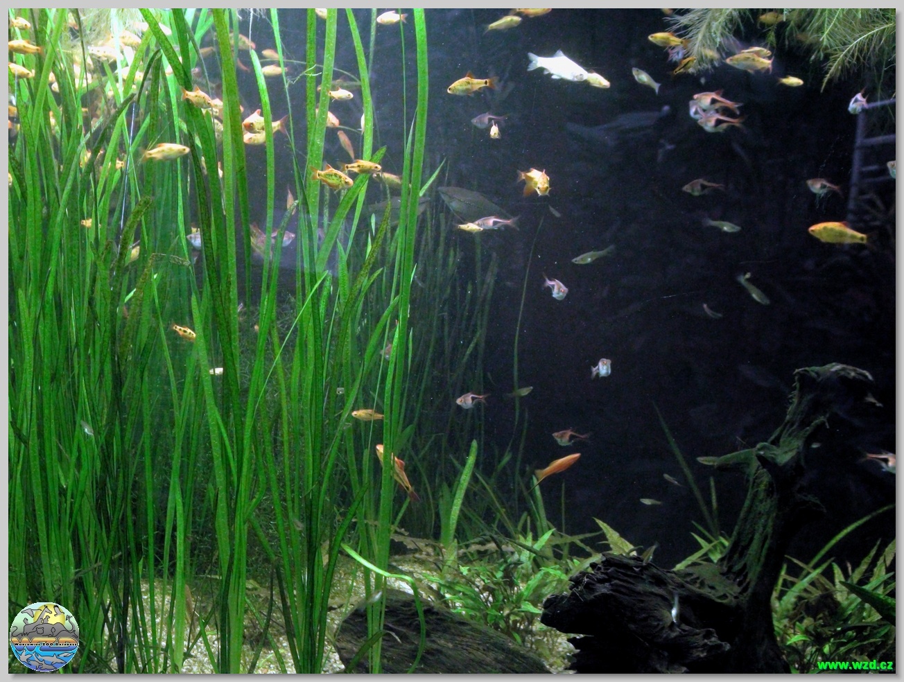 akvárii, bazénkem vodních želv v tropickém skleníku a voliérou drobných