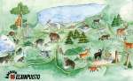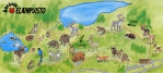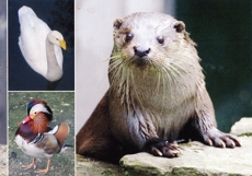 deer, roe deer, wisents, takins, wild boars, beavers, owls, waterfowls,